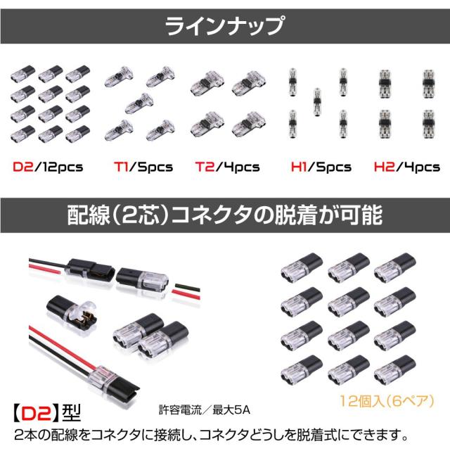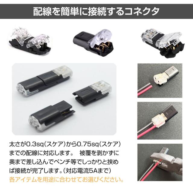 配線どうしを簡単に接続することができるコネクターです。 自動車をはじめ様々な接続、分岐などの配線作業で重宝します。 カチッとした感触と透明のカバーで接続感もよく、速く、より安全な接続を可能にします。 様々な状況に対応できるよう5種類よりご選択いただけます。 |