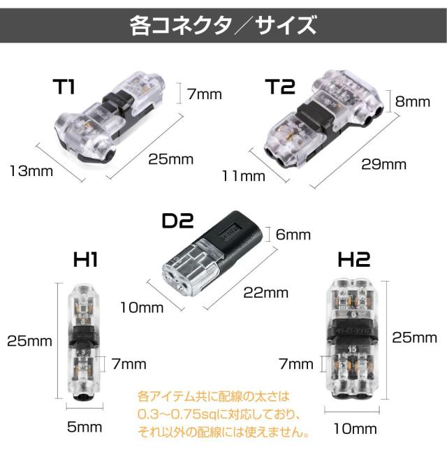 | 商品名 | ワンタッチ配線接続コネクター 0.3〜0.75sq配線用 全5種類 |