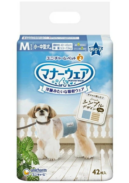 ユニチャーム マナーウェア 男の子用 モカストライプ・ライトブルージーンズ Mサイズ 42枚
