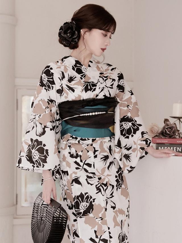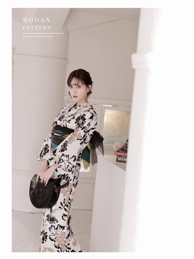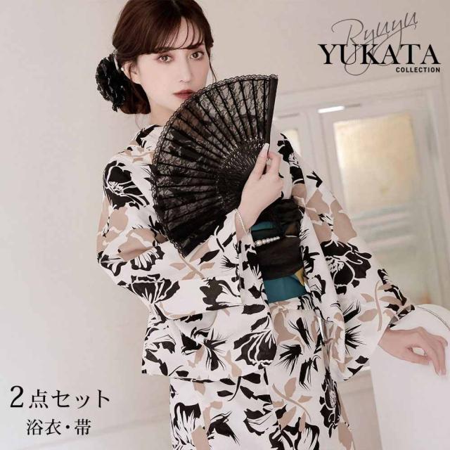 予約販売 キャバ浴衣 Ryuyu 白 きれい 2点セット 大人 女性用 浴衣 セット レディース 浴衣レディース レディース浴