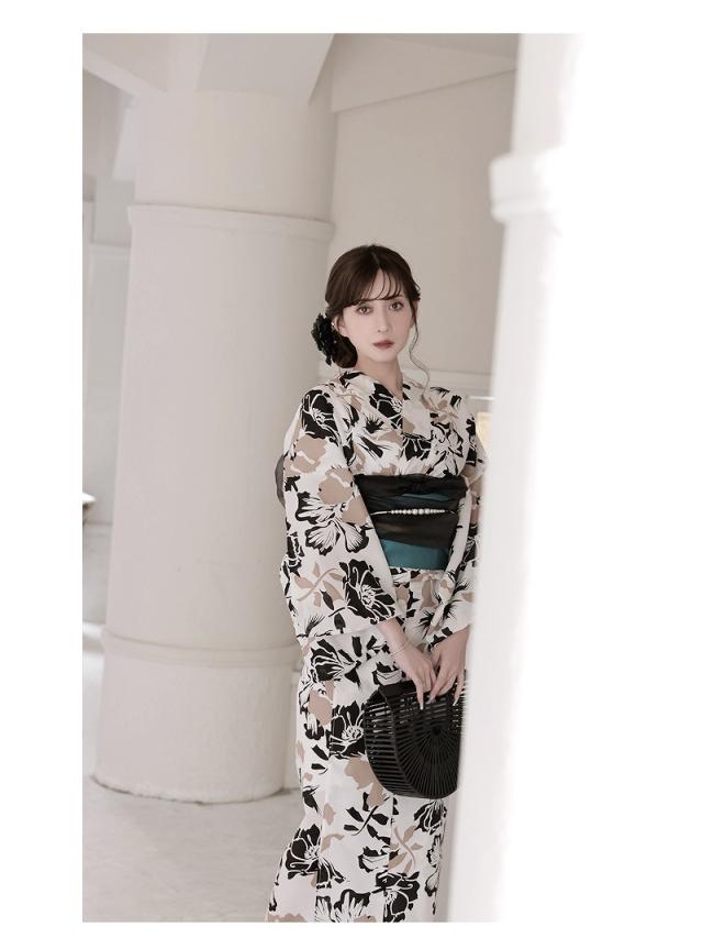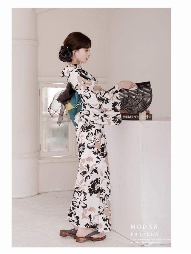 ☆白×ベージュの配色が高級感纏う女性用浴衣。