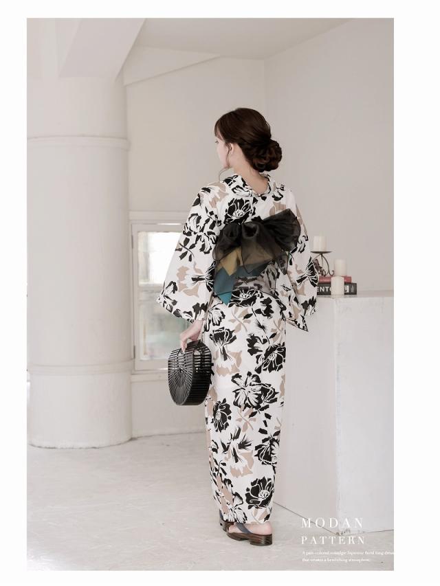 ☆レトロモダンな花柄がきれいなレディース浴衣。