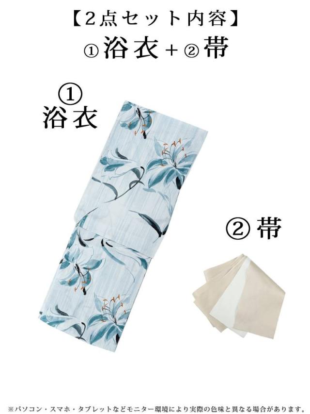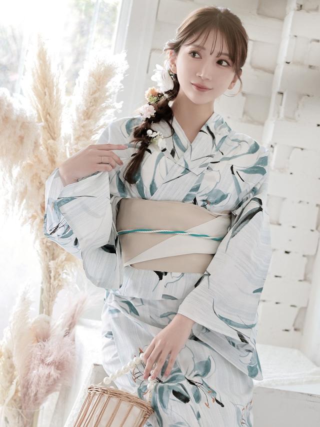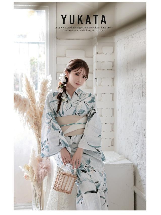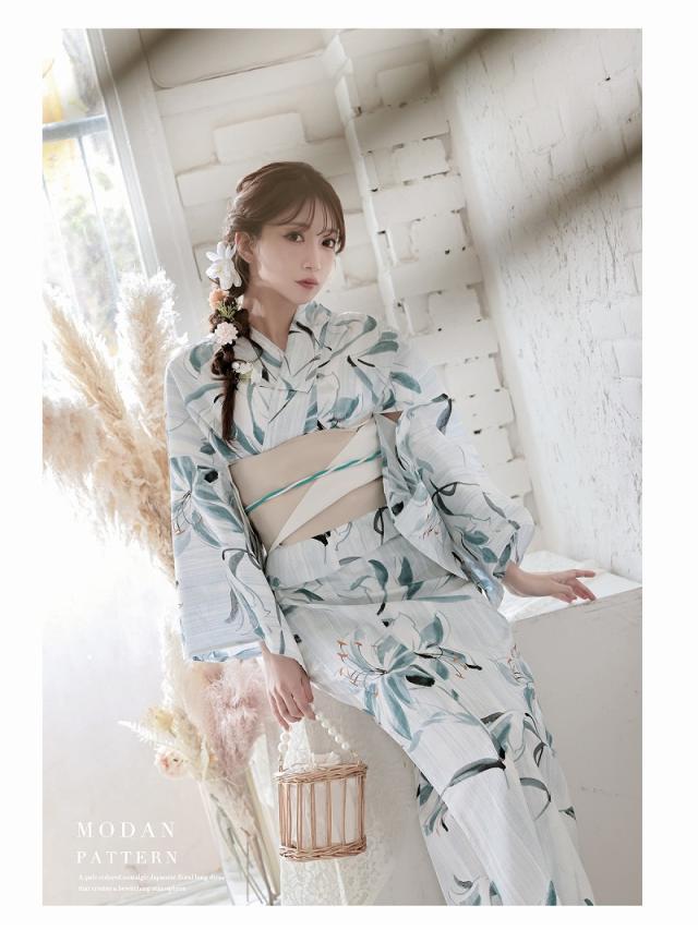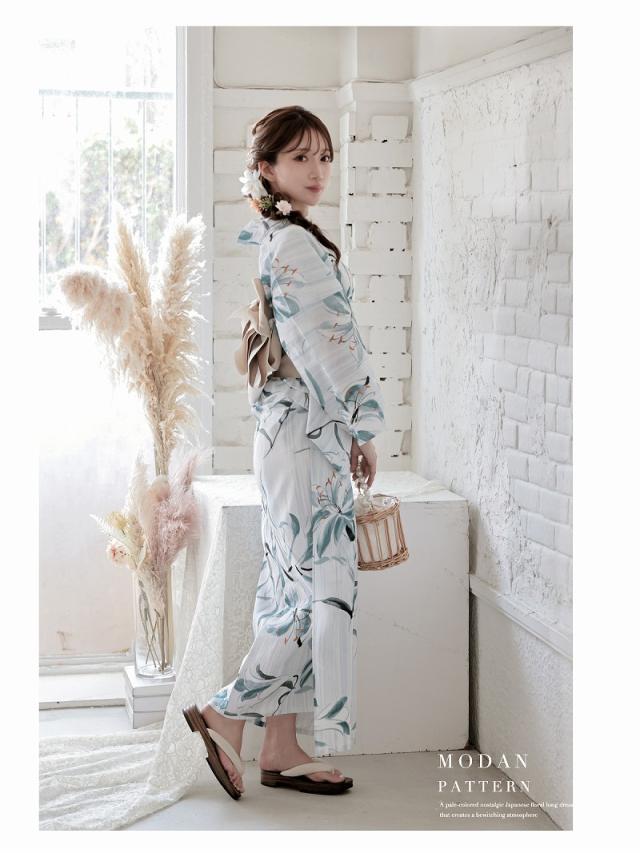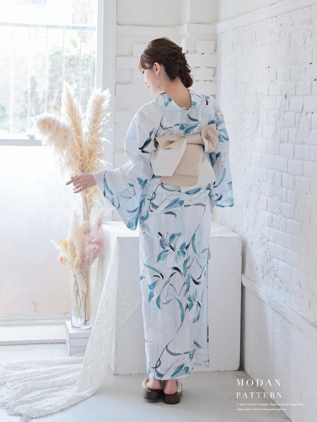 ☆大きな百合柄が映える女性用ゆかたは大人かわいい雰囲気を演出する大人浴衣。