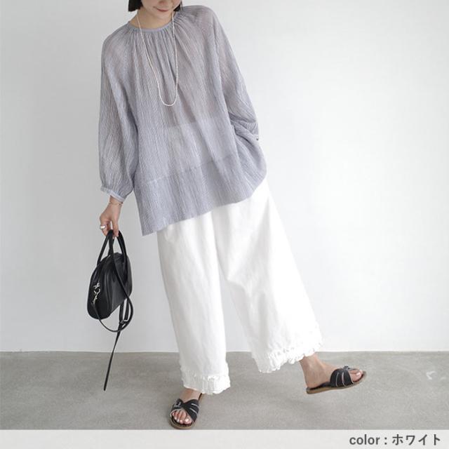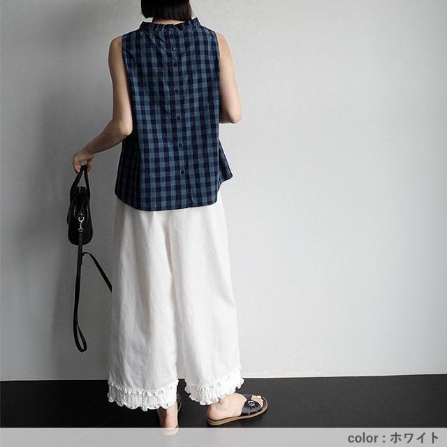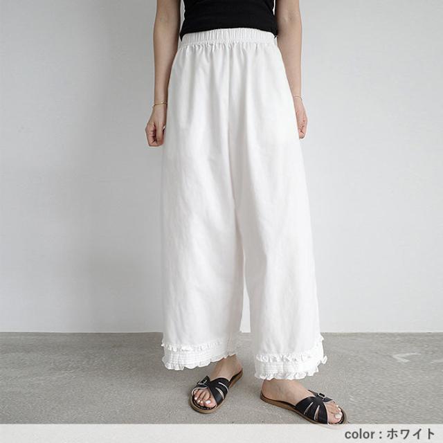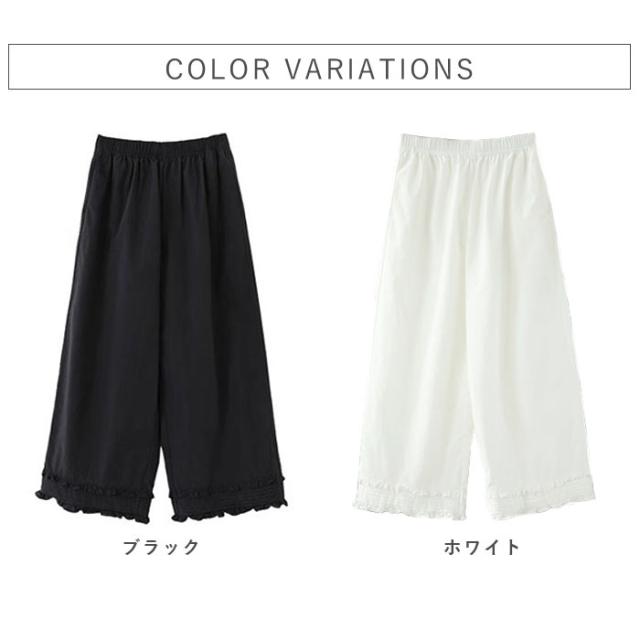 ボトムス レディース ワイドパンツ パンツ フリルパンツ ガウチョパンツ 裾フリル 9分丈 ウエストゴム ポケット カジュアル ペチパンツ レース 重ね着 レイヤード 着やせ 体型カバー 春 夏 白 黒 おしゃれ シンプル 40代 30代 50代 60代 大人 カジュアル かわいい きれいめ SALE セール uricca ウリッカ うりっか ポイント利用