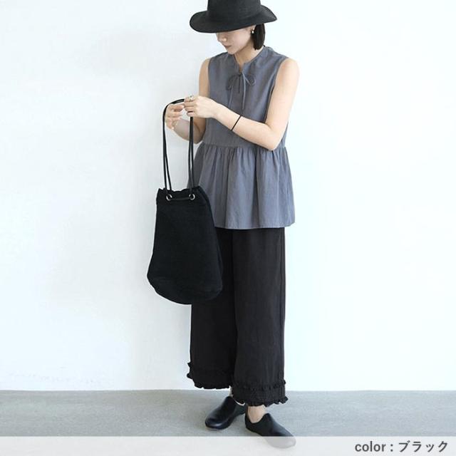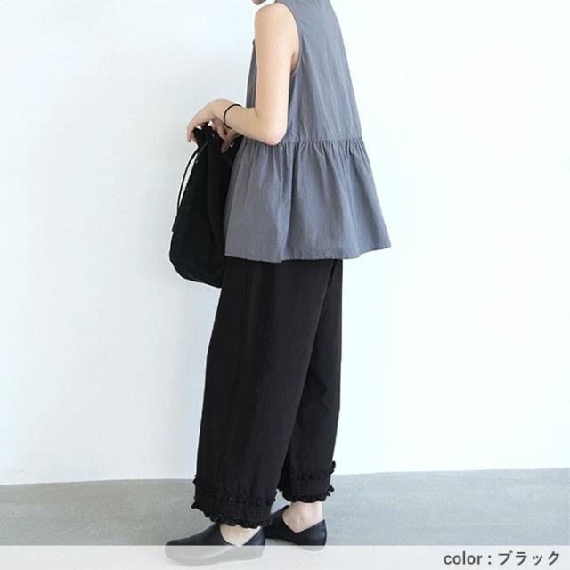 春新作 ボトムス レディース ワイドパンツ パンツ フリルパンツ 裾フリル 9分丈 ウエストゴム ポケット カジュアル 春 夏[郵2]^b501^ ★