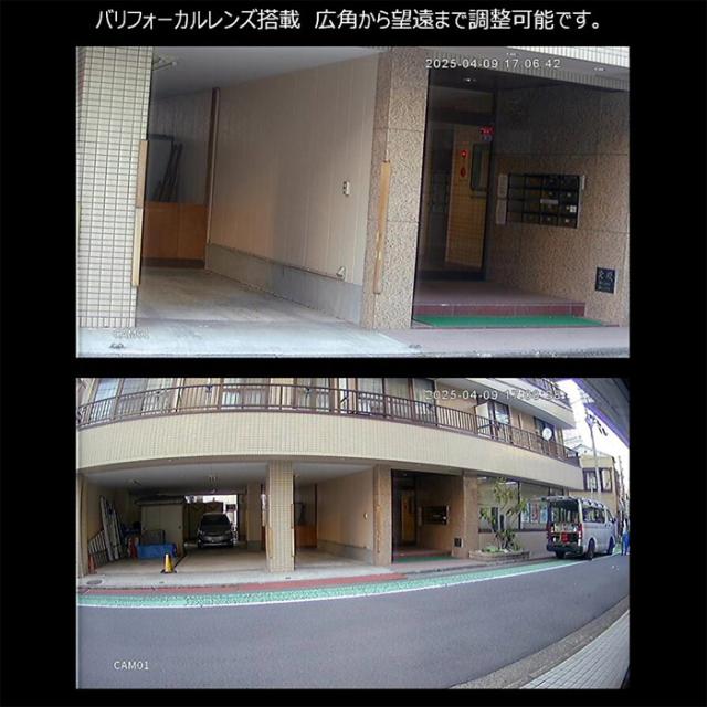 焦点距離2.8〜12mmのバリフォーカルレンズレンズを搭載しており、広角から望遠までの撮影に対応します。