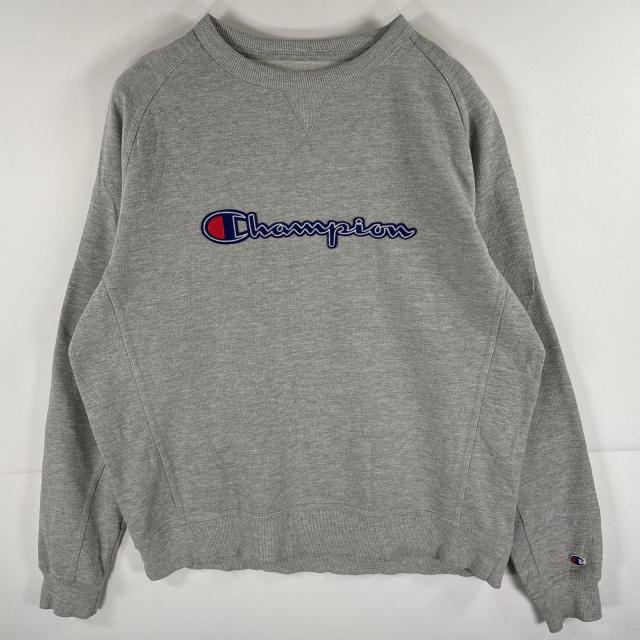 古着 チャンピオン Champion スウェット トレーナー ビッグロゴ ワッペン クルーネック XL グレー メンズ