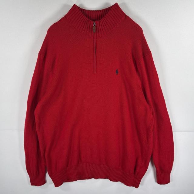 古着 ポロバイラルフローレン Polo by Ralph Lauren ニット ハーフジップ トレーナー ニット ワンポイント 大きいサイズ 2XB レッド