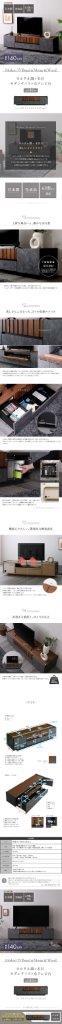 テレビ台 テレビボード 140cm幅 日本製 モルタル調×木目 フラット扉 引出し モダン