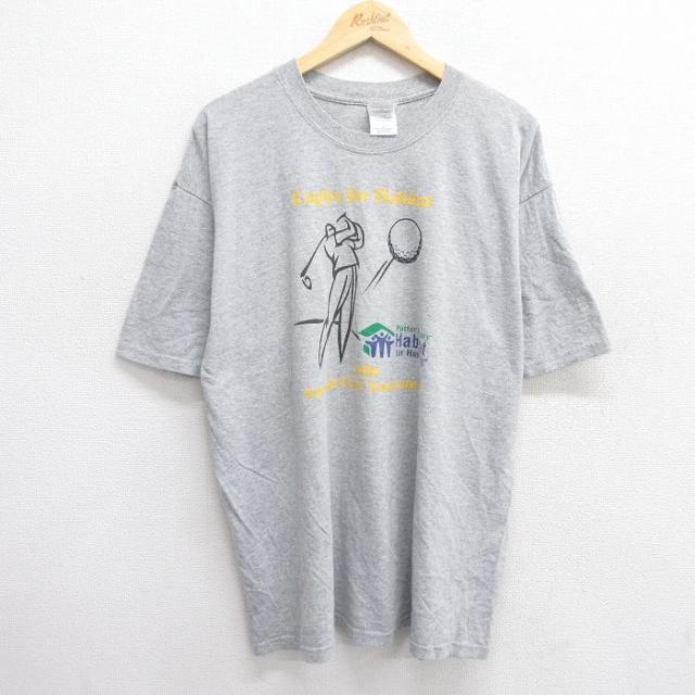 【商品名】 XL★古着 半袖 ビンテージ Tシャツ メンズ 00年代 00s ゴルフ メッセージ 大きいサイズ クルーネック グレー 霜降り