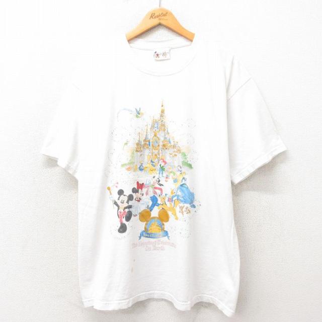 古着 半袖 ビンテージ Tシャツ メンズ 00年代 00s ディズニー DISNEY Epoot Dive Qest 大きいサイズ コットン クルーネック 白 中古 古着