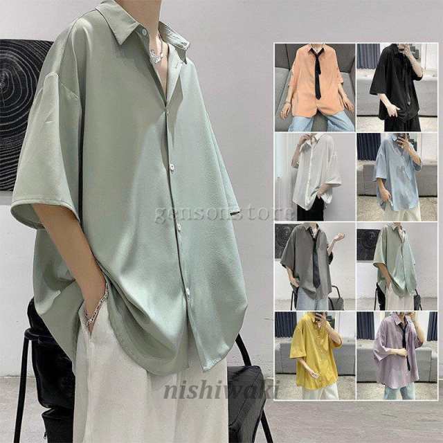 シャツ メンズ ボタンダウン カジュアルシャツ 半袖 シフォン 涼しい 無地 トップス オーバーサイズ 大きいサイズ 夏服 開襟シャツ お兄系 全8色