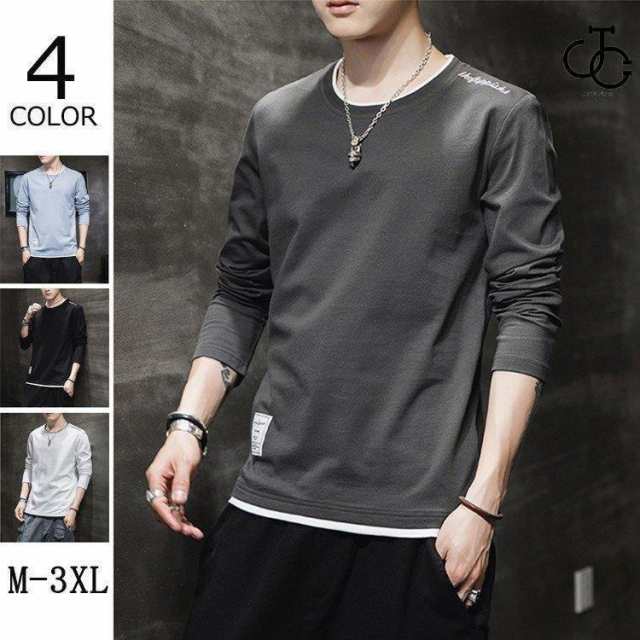 Tシャツ メンズ 長袖 ロンT 長袖Tシャツ 肩の刺繍 カジュアルTシャツ クールネック インナー メンズ春物 春服 父の日
