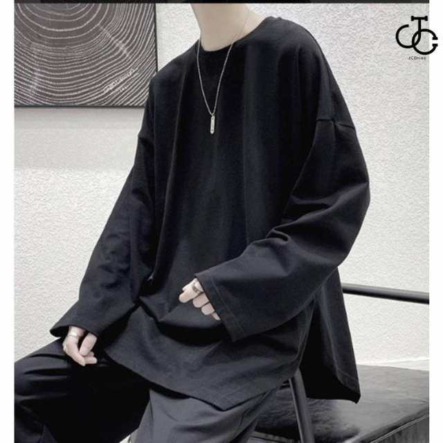 メンズ 無地の地ビッグ長袖Tシャツ