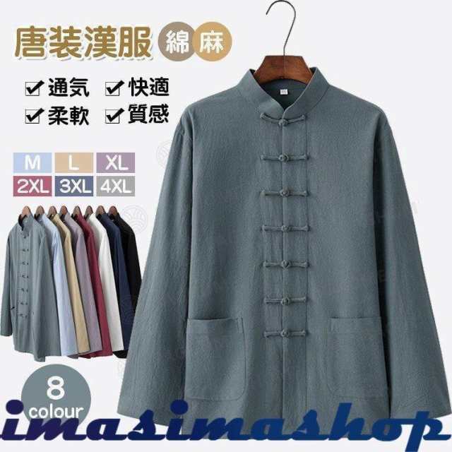 チャイナコート メンズ トップス カーディガン 武術服 唐装漢服 太極拳服 長袖 チャイナボタン 無地 薄手 シャツ 綿麻 ポケット付き 中国風 男性用