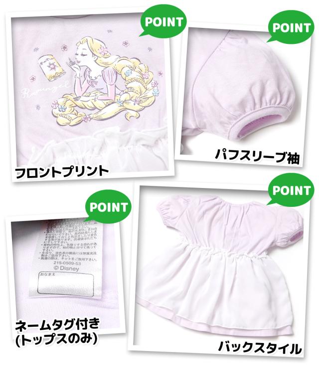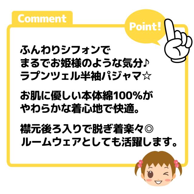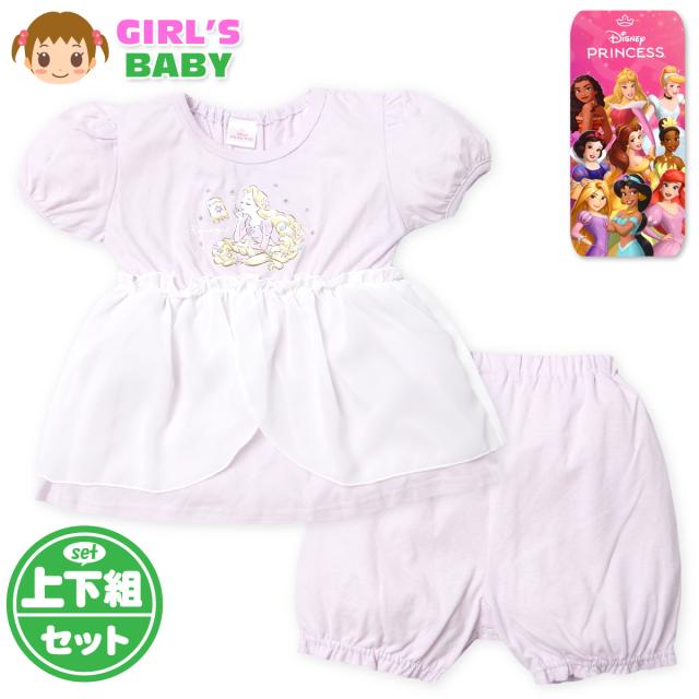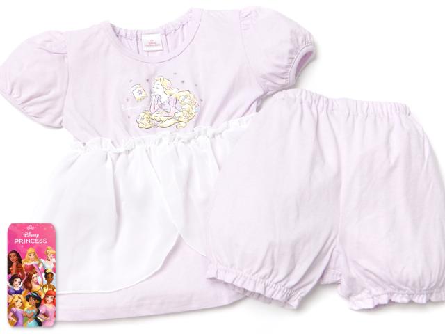 【送料無料】女児 ベビー 本体綿100% 半袖 パジャマ Disney ディズニー 塔の上のラプンツェル 上下組 ショートパンツ シフォン ベビー服 女の子 80cm 90cm 95cm iw-1336【メール便対応】