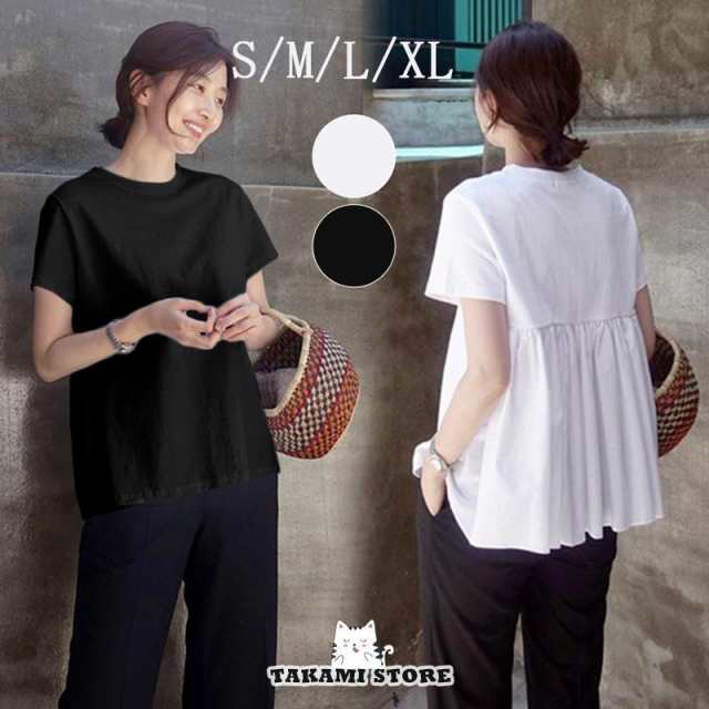 tシャツ 半袖 春 夏 クルーネック 無地 ゆったり トップス カットソー uvカット プルオーバー バックフレア フリル ギャザー ゆったり おしゃれ
