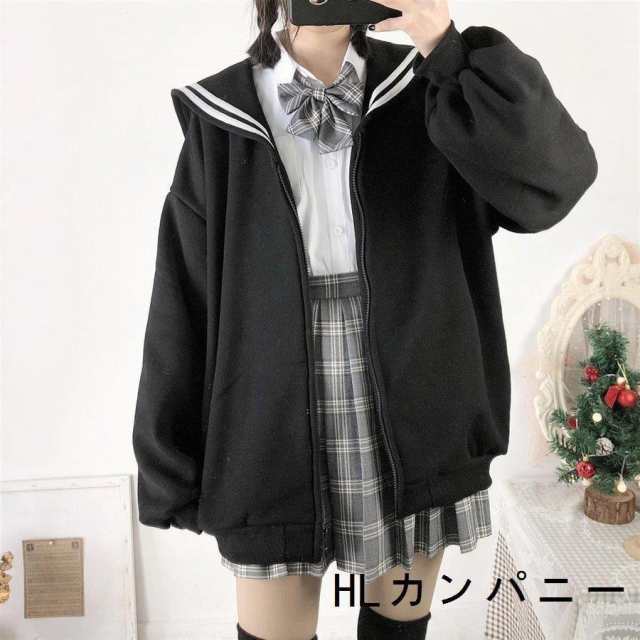 ビックシルエットセーラーカラープルパーカーかわいいオーバーサイズフリルゆったり長袖レディースパーカートップスロリータ