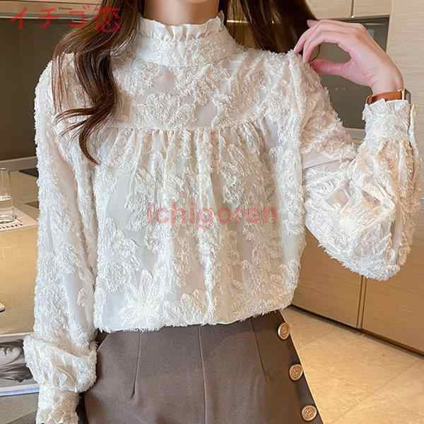 トップス レースブラウス フリル襟 花柄ブラウス シフォンブラウス 長袖 大人 20代 30代 40代 50代 60代 レディス レディース 春秋 新作 2025