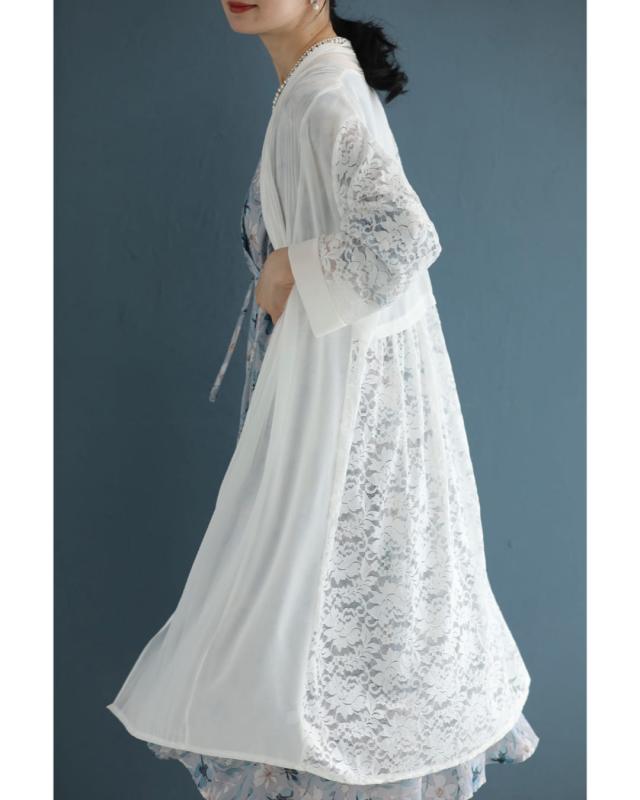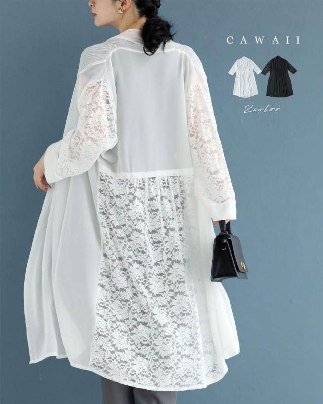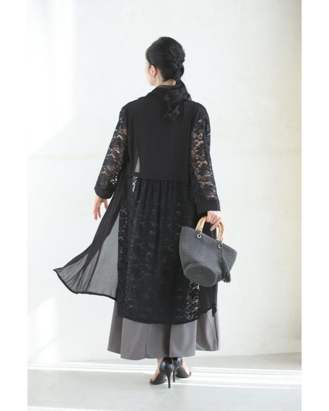 再入荷6月26日 後ろでなびく美レースの軽やかなベールカーディガン cawaii w61279ps S~2L対応 ブラック ホワイト UV対策 冷房対策 レース シアー 体型カバー 軽量 春 夏 おでかけ リゾート 旅行 ちょい足し レディース ファッション 大人 ママ ミセス 30代 40代 50代