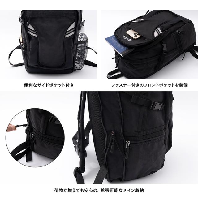 さらに、メインポケットは拡張可能で、荷物が増えても安心。