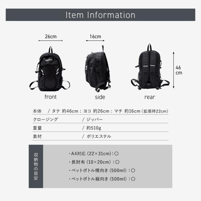 さまざまな場面での活躍が期待できるバックパックです。