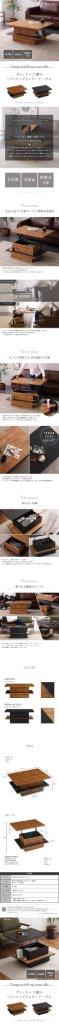 センターテーブル 昇降 ヴィンテージ調 日本製 ブラウン色 ブラック色 全2色 リフティング リフトアップ