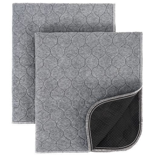 表地は子犬や老犬のケアにも最適な柔らかくて、吸水性の高いフリース生地。真ん中はポリエステルレイヤに防水コーティング。下に浸透する心配はありません。裏面はズレにくいノンスリップ仕上げ。滑りやすいフローリングでの転倒を防止します。ズレが原因の汚れから開放されます