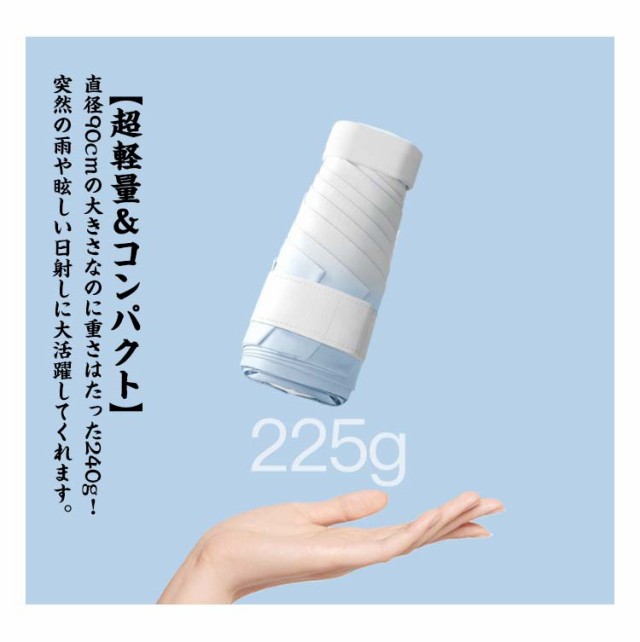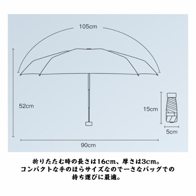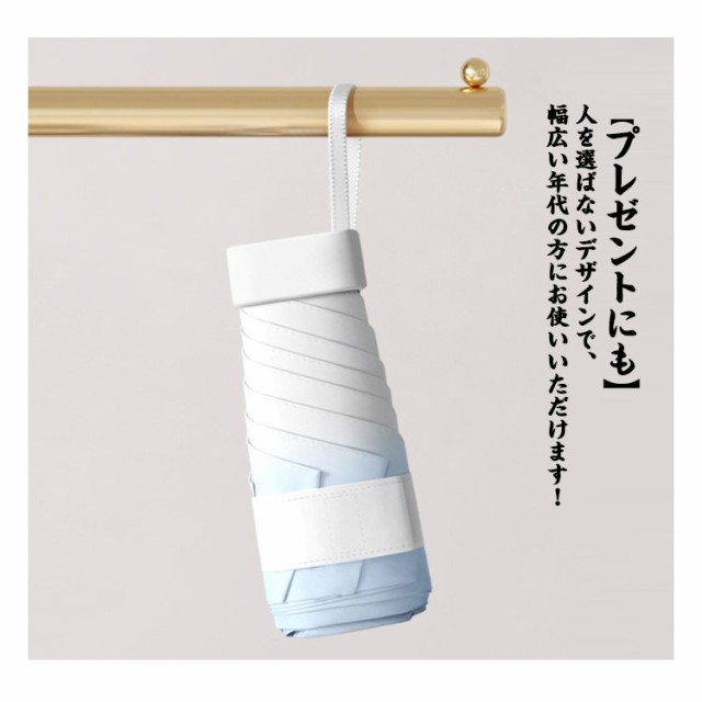 | グラデーションパステルカラーのミニ折りたたみ傘が新登場。 【超軽量&コンパクト】 直径90cmの大きさなのに重さはたった240g!突然の雨や眩しい日射しに大活躍してくれます。 折りたたむ時の長さは16cm、厚さは3cm。コンパクトな手のほらサイズなので一さなバッグでの持ち運びに最適。 【UVカット遮光&撥水抜群】 最高級の撥水力で雨粒と生地の接触する面積が減ることで雨滴が転がりやすくなり、雨の日のストレスを軽減。 薄くて軽量でありながらUVカット率は99.9%以上、UPF50+!一年中使うことができ、梅雨にもUV対策にも欠かせない万能で優秀なアイテムです。 【風に強い傘骨】 傘骨は軽くて丈夫なガラスファイバーとアイアンを使用。軽いだけでなく、強度や耐久性も抜群で、風が強い日でも安心して使えます。 【プレゼントにも】 人を選ばないデザインで、幅広い年代の方にお使いいただけます!誕生日、記念日、母の日、父の日、敬老の日、お祝い、入学、卒業、バレンタイン、ホワイトデーなどのプレゼントにもおすすめです。 | |
