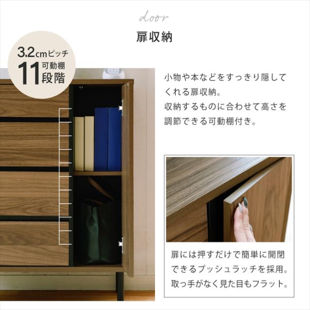 4段のチェストに扉収納がついたワイドチェストは、シンプルだからこそ使いやすいアイテムです。
