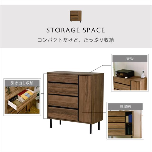 | 高さ90 リビングチェスト 収納 洋服収納 小物 服 キャビネット 80 ブラウン 四段 ワイド 80cm幅 間仕切り おしゃれ ブラウン ブラック |