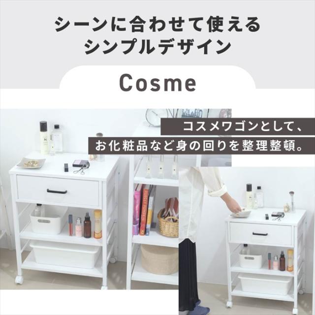 キッチン収納としてだけでなく、デスクサイドに置いてデスクワゴンとしてや、日々使うメイク道具などを収納してコスメワゴンとしても。
