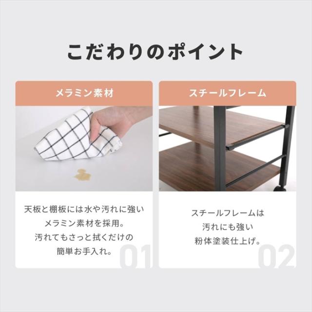 幅50cmのキャスターが付いて移動がラクラクキッチンワゴン。