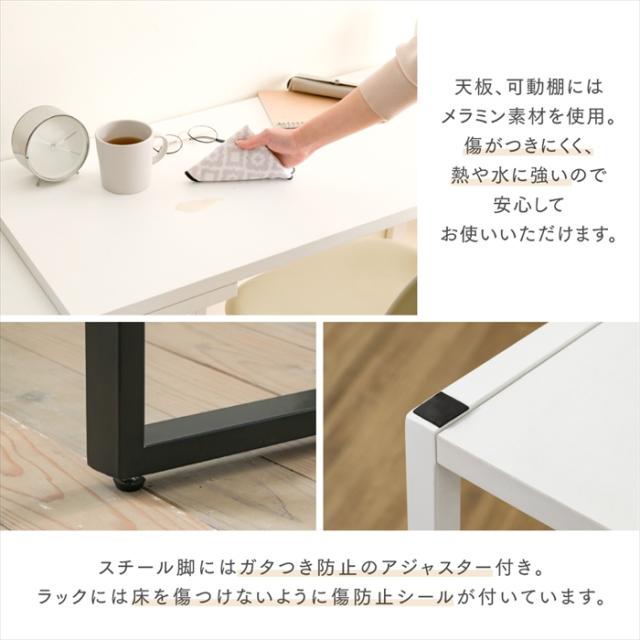 | [天板]合成樹脂化粧合板(メラミン樹脂) [棚板・底板]合成樹脂化粧繊維板(メラミン樹脂) [フレーム]スチール(粉体塗装) |