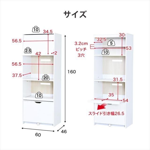 [外寸]幅60×奥行46×高さ160cm