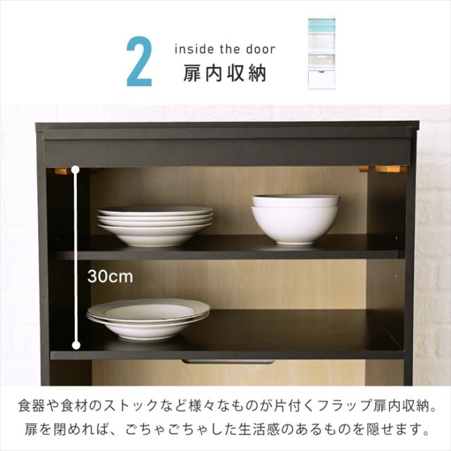 レンジ台 幅60 レンジボード 家電ラック キッチンボード 食器棚 キャビネット キッチン収納 家電収納 炊飯器ラック レンジラック 白 黒 フラップ扉 スライド棚付
