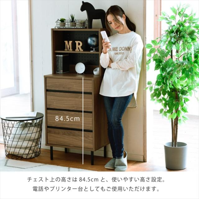 【値下げ】サイドボード スリム 飾り棚付きチェスト コンセント付きチェスト ラック付き 木製 4段 北欧 ブラック ブラウン 引き出し 脚付き 黒 幅55.5 奥行35.5 薄型 収納