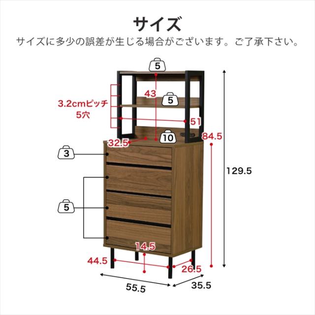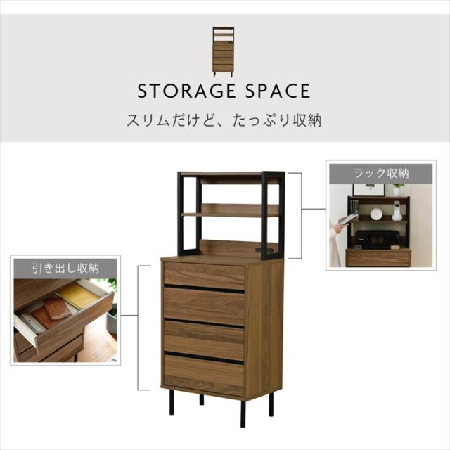 ハイチェスト 幅55.5 ラック付きチェスト スリムチェスト 4段 木製 スリム 北欧 収納 ブラック ブラウン 脚付き サイドボード 奥行35.5cm 引き出し付き