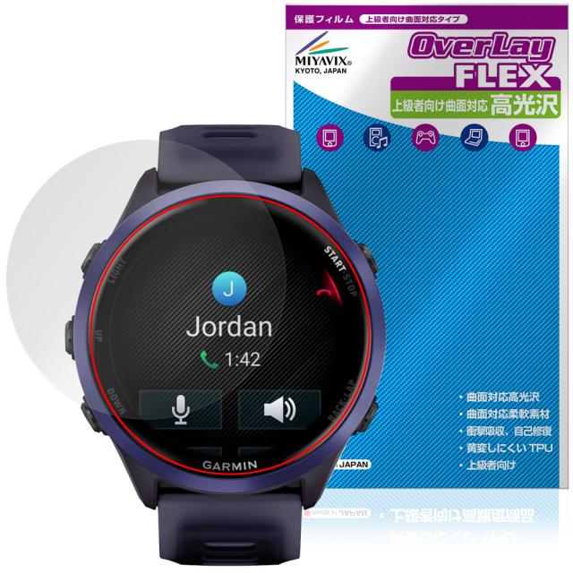 GARMIN Forerunner 570 47mm 保護 フィルム OverLay FLEX 高光沢 for ガーミン フォアランナー 液晶保護 曲面対応 柔軟素材 衝撃吸収 透明
