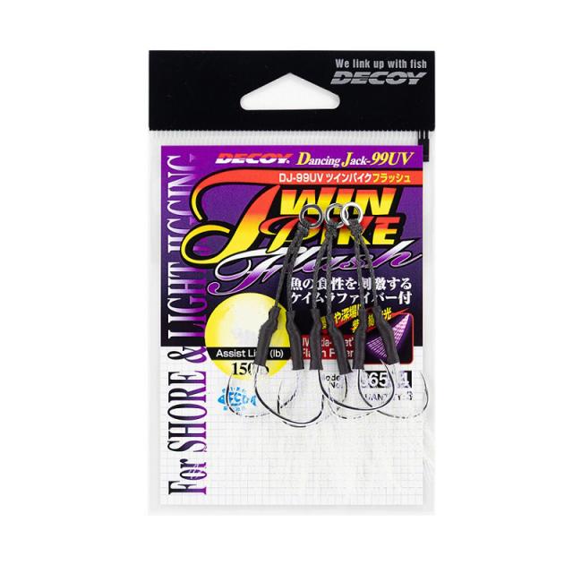 近年のジギングの定番アシストフック「DJ-88 ツインパイク」に、フラッシュファイバーをタイイングした派生モデル。