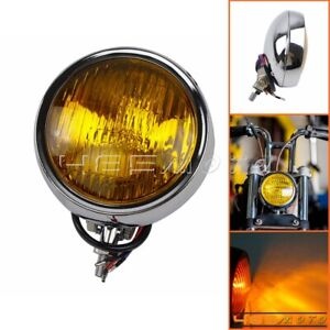 4.5インチ 4 1/2インチ ボトムマウント オートバイ ヘッドライト クロームハウジング アンバーレンズライト付き 4.5" 4 1/2" Bottom Mount Motorcycle Headlight Chrome Housing w/ Amber Lens Light