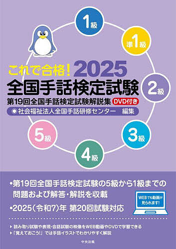 第19回全国手話検定試験(2024年実施)の5級〜1級の問題及び解答・解説を収載。実技試験問題を収録したDVD付き(WEB動画も視聴可)で、手話表現をわかりやすく解説。手話の読み取り・表現のポイントや筆記試験対策の解説も充実。巻末に5級〜準1級の基本単語一覧を収載。