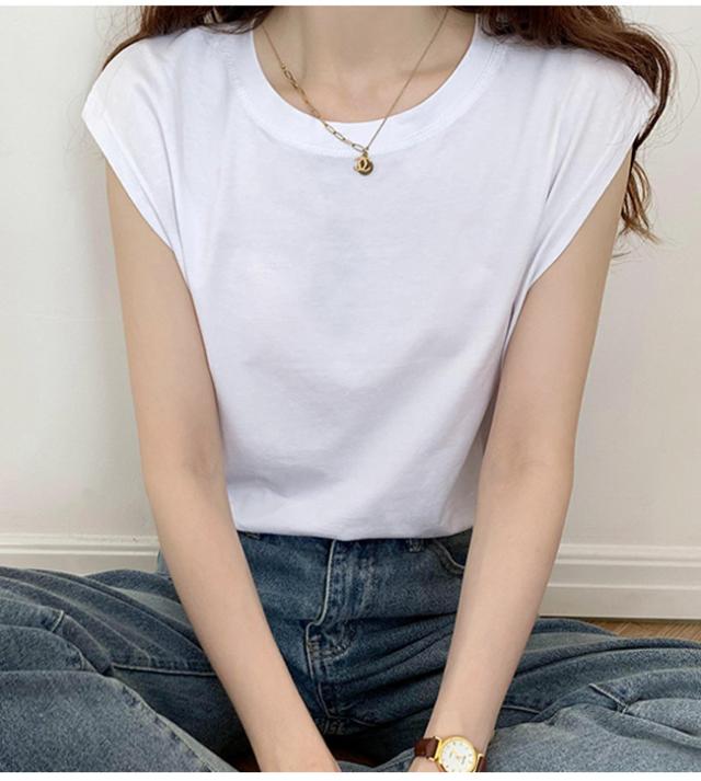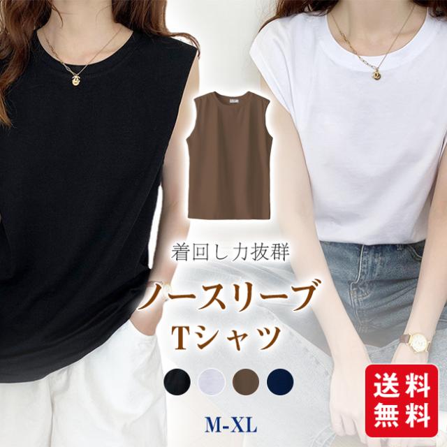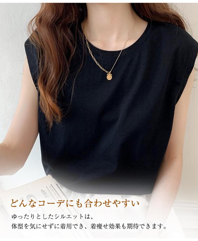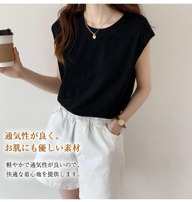 フレンチスリーブ Tシャツ レディース トップス カットソー ノースリーブ インナー ゆったり 大きいサイズ 無地 春 夏 着痩せ