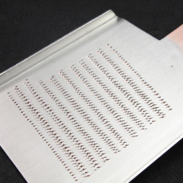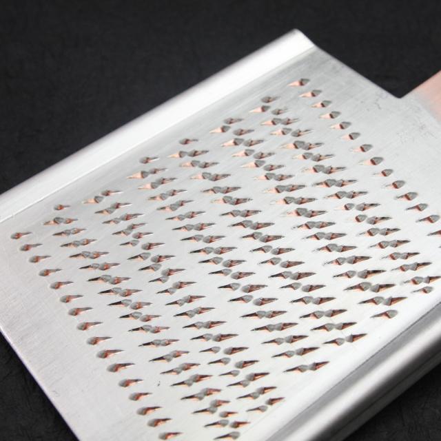 手打ちによってできる不規則に並ぶ刃は、大根やわさびなどを上下させる毎に次々とかかり、楽におろすことができます。