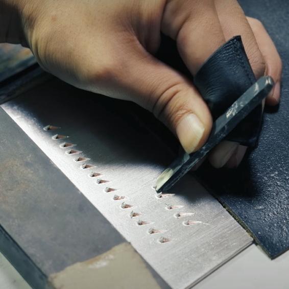 鏨(たがね)を使い、ひと目ひと目手で打っているおろし金の刃は、ご覧のようにとても高く鋭くなっています。