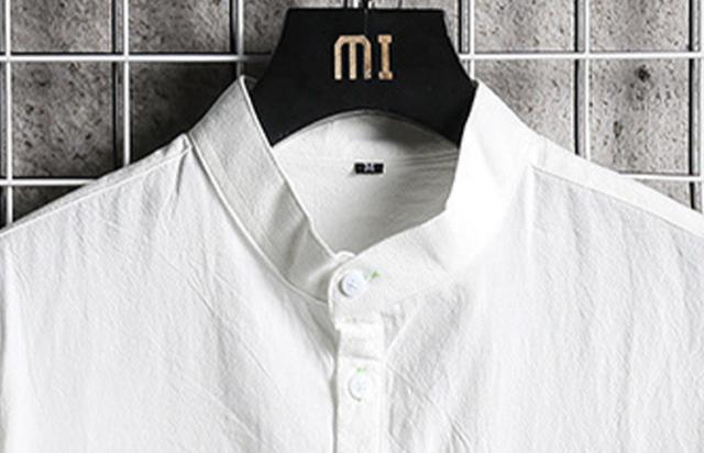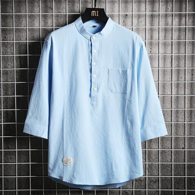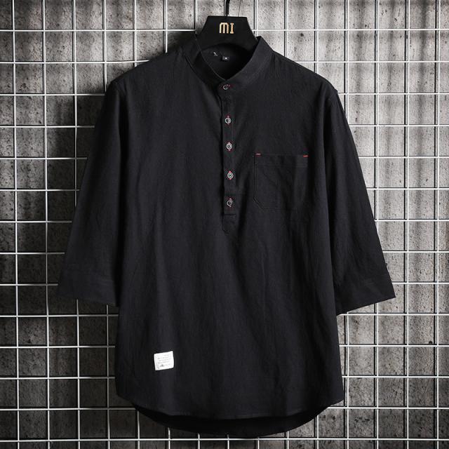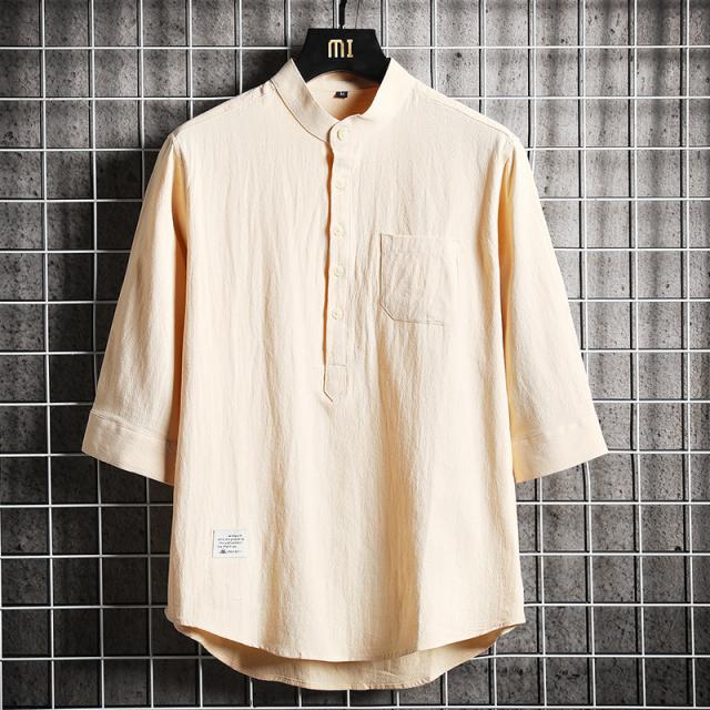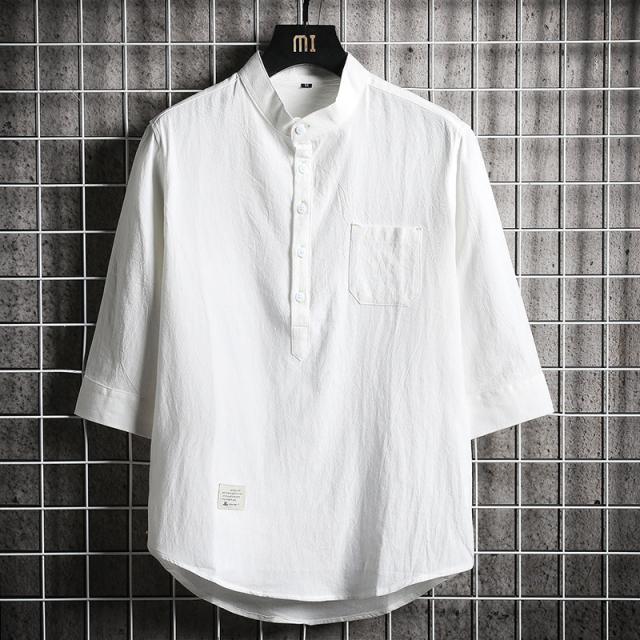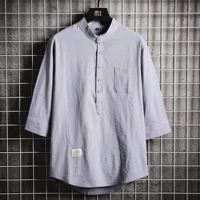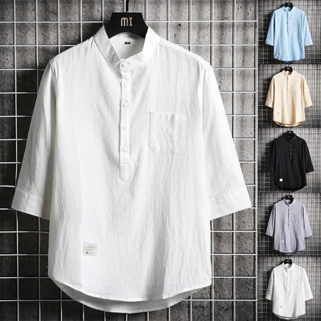 メンズ シャツ 七分袖シャツ カジュアルシャツ スタンドカラー リネンシャツ 涼しい ゆったりシャツ 夏