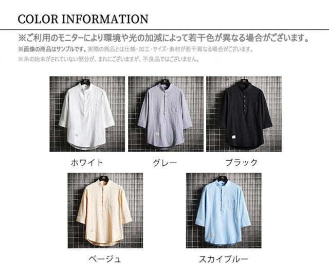 メンズ 七分袖シャツ カジュアルシャツ スタンドカラー リネンシャツ 涼しい ゆったりシャツ 夏 サマー