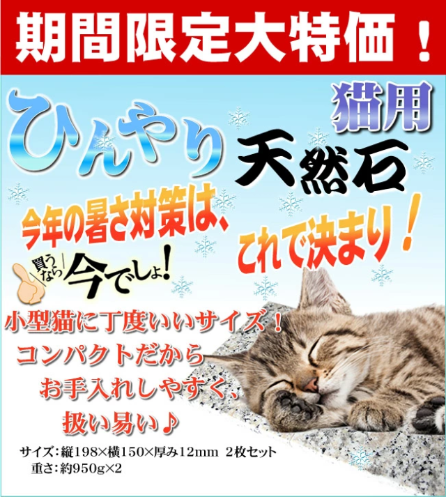 暑さ対策! ひんやり 天然石 プレート ★ 2枚入り 猫用 マペット ひんやりプレート 暑さ対策 エコ 夏 冷感 クール 水洗い コンパクト 猫