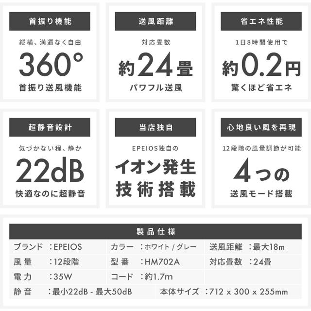 【めざましテレビ紹介】高評価★4.48|Epeiosサーキュレーター DCモーター 静音22db|梅雨の部屋干しに◎ 省エネ×12段階風量×360°送風|アロマ対応・暑さ対策に