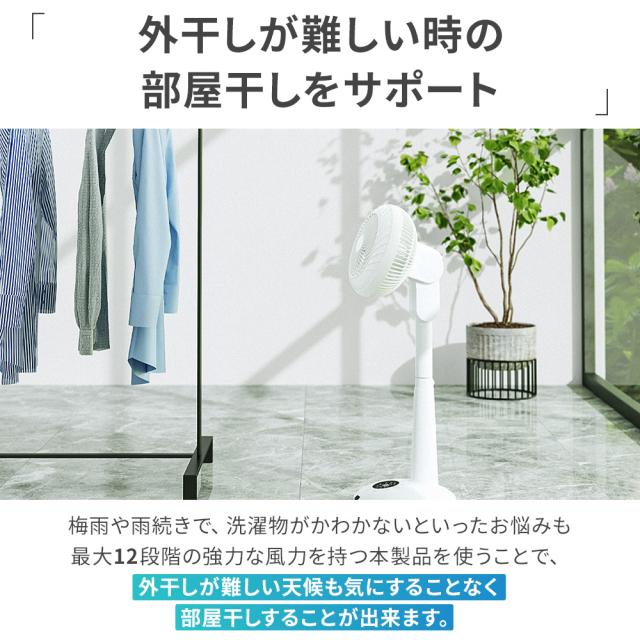 夏はエアコンと併用、梅雨時は部屋干し乾燥にも◎。最大風速32m対応。